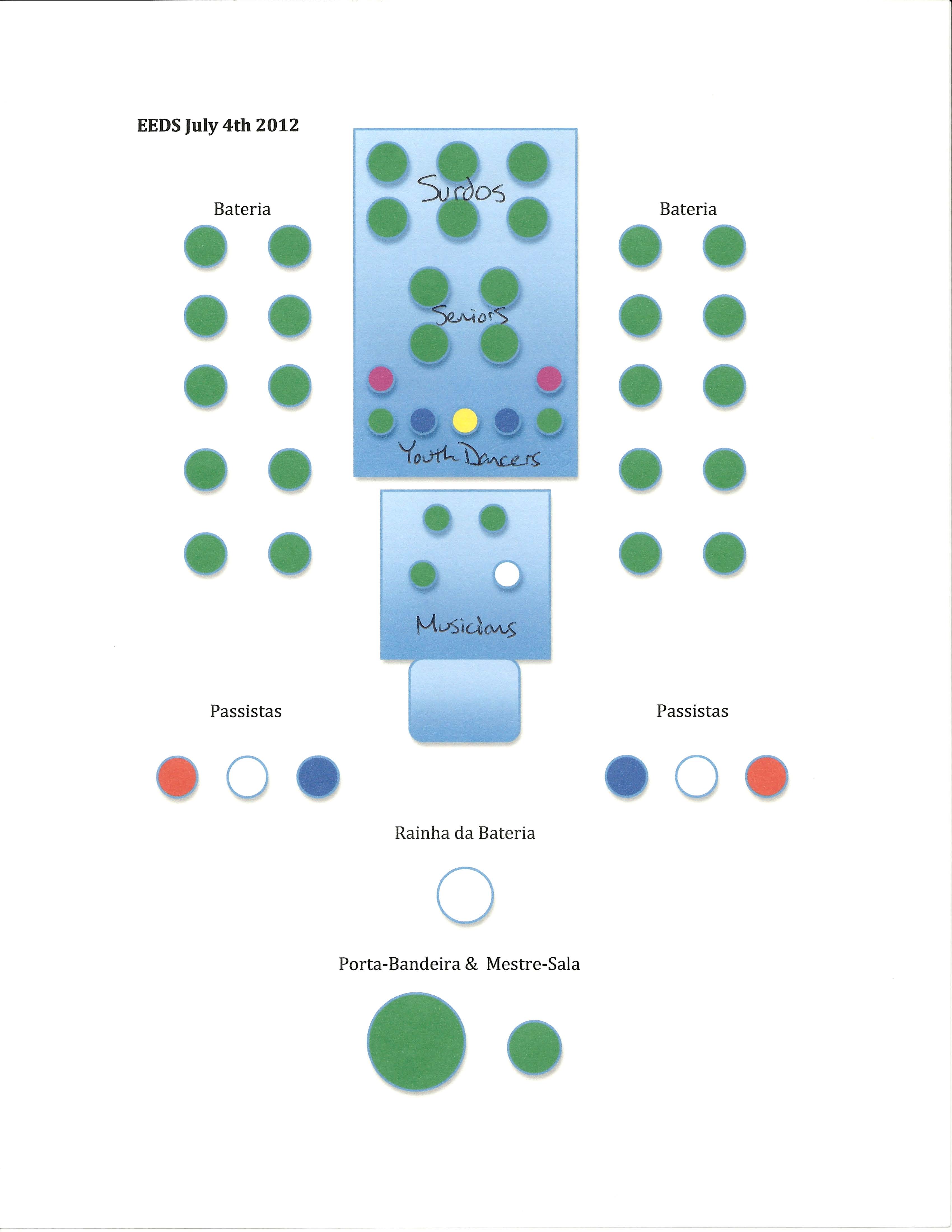 Each day between now and the big performance, we will be revealing one aspect of the parade to whet your appetite for samba. Today, check out the graphic below for a teaser of what our layout will be on parade day. And if you have not RSVP’d on Facebook, get on it!