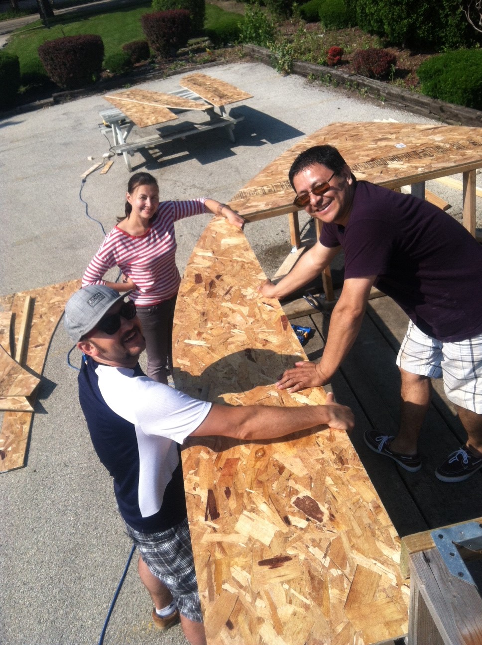 Can you believe that tomorrow is July 4th?! Our dancers and percussionists have been working hard to make the 4th of July performance great – but there is a whole other team working behind the scenes on another important aspect of our parade – the float! While you will have to come to the 4th of July parade to see the final product – check out some of the pictures of our work in progress. Extra special thanks to Dave, Jorge, Anya, Max, Chris, Reed, our young helpers and everyone else who has helped on the sometimes-complicated construction of the EEDS parade float. We think it will be our best ever!